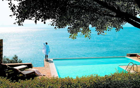 On peut y accéder directement en hélicoptère et se la jouer couple présidentiel en pleine parenthèse « vacances dorées ». A l’Elounda Peninsula, dans le Golfe crétois de Mirabello, là où les montagnes aux parois tailladées tombent dans la mer Egée, le mot « privé » se décline à tous les temps et à tous les modes. Le golf, neuf trous, est privé. Les piscines sont privées. La plage de sable blanc et le port de plaisance sont eux aussi privés et le mot « chambre » a été banni au profit de celui, nettement plus chic, de «Suites» !