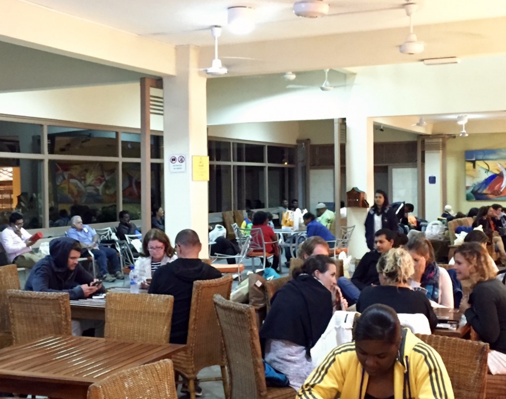 Je profite du temps imparti pour faire connaissance avec d’autres passagers. Un couple d’australiens et leur fils résidant à Maurice sont à l’aéroport depuis 13h. Mon smartphone affiche désormais 20h, soit plus de 7h d’attente à l’aéroport de Rodrigues. Je me souviens très bien d’eux puisqu’ils séjournaient eux aussi à l’hôtel Tekoma.