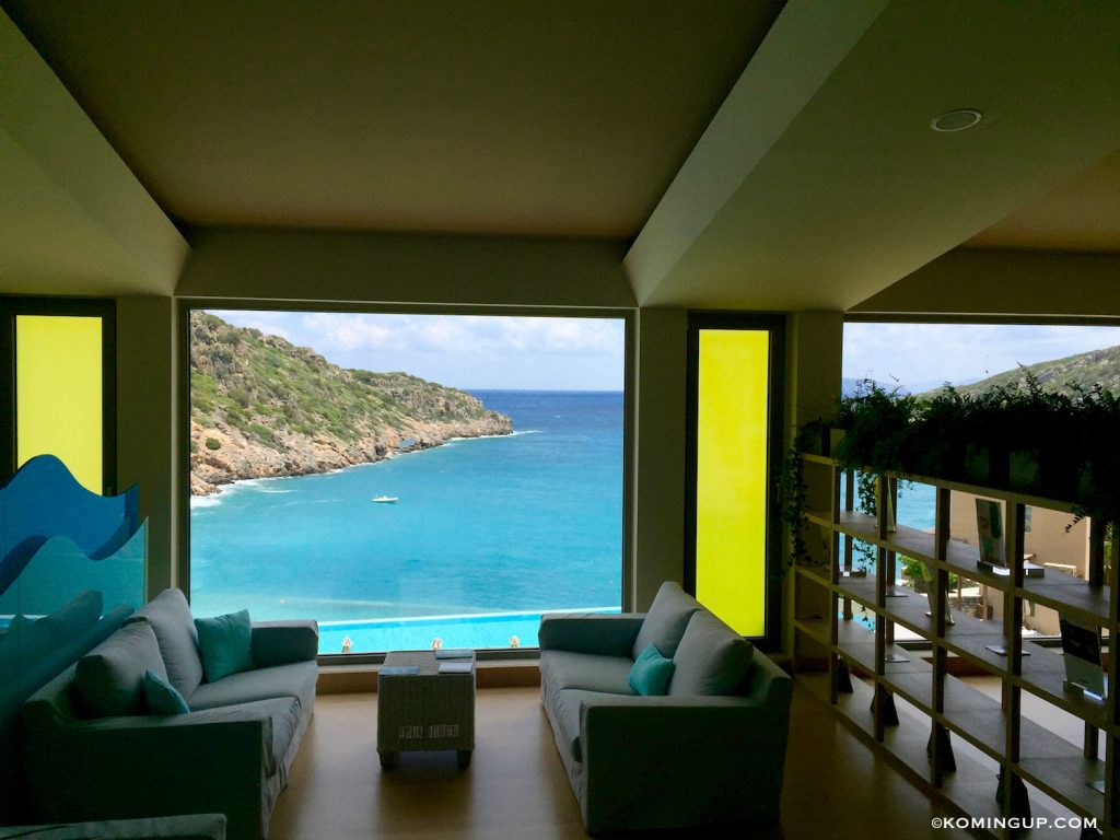 De la terrasse extérieure, la vue sur l’hôtel Daios Cove est spectaculaire. J’en prends plein les yeux !!!